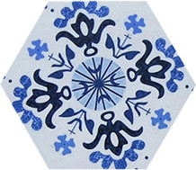 Hexagonal tiles are available as tiny shapes for mosaic designs and large - format sizes that make a room appear bigger and more open . Install patterns with different colors to add an alluring element to hexagonal tiles of the same size . This blue and white Chinese style hexangon make the fresh and traditional look . It is designed for residential interiors floor and wall , living rooms , and for commercial settings like shops , hotels and restaurants .